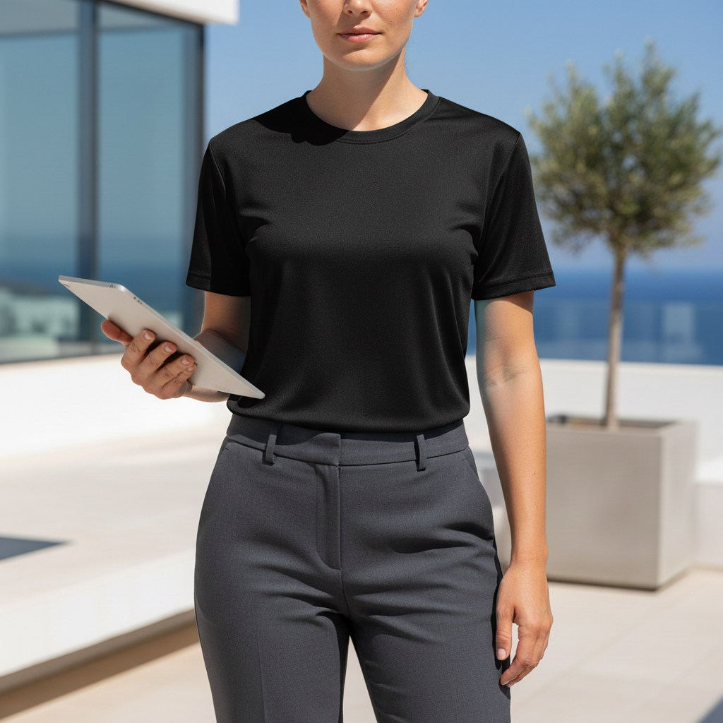 Bee Dry Bisiklet Yaka, yoğun tempoda çalışan personeller için tasarlanmış, teri hızla uzaklaştıran ve gün boyu kuru kalmayı sağlayan performans tişörtüdür. Hafif yapısı ve nefes alabilir dokusu sayesinde uzun vardiyalarda konfor sunar.